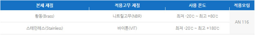 - 표준 오링에 맞지 않는 유체는 별도로 오링을 주문하십시오.