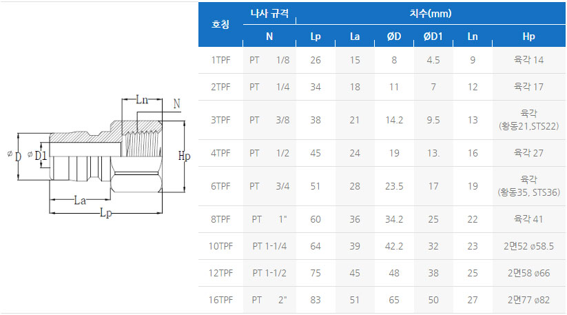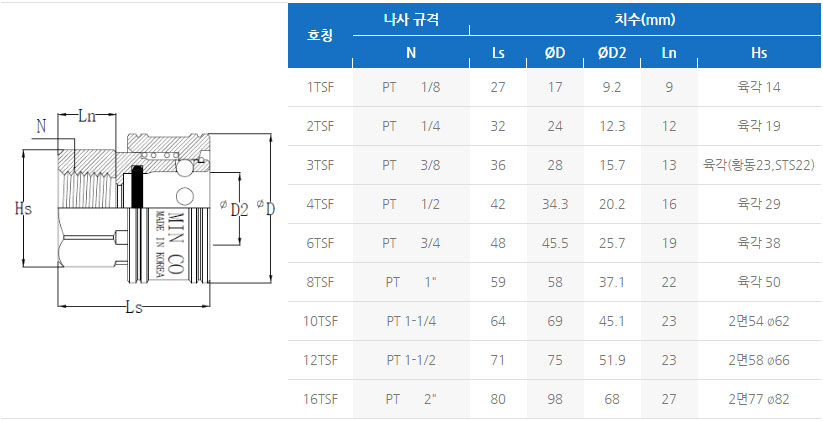 1. TSP형 COUPLER(F형) 호칭 및 치수