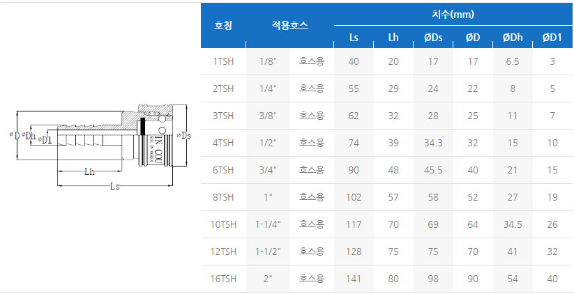 1. TSP형 COUPLER(H형) 호칭 및 치수